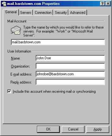 Make sure you type them using lowercase letters and no spaces.  Also check and make sure that the type of incoming mail server is POP3.  Further down on this screen make sure you have the correct user name and password typed in lowercase and no spaces.  The next screen to check is the on the connection tab. Make sure on this screen you have the correct connection selected either BISI or KYOL. When you are finished click apply and then ok and close the accounts screen.